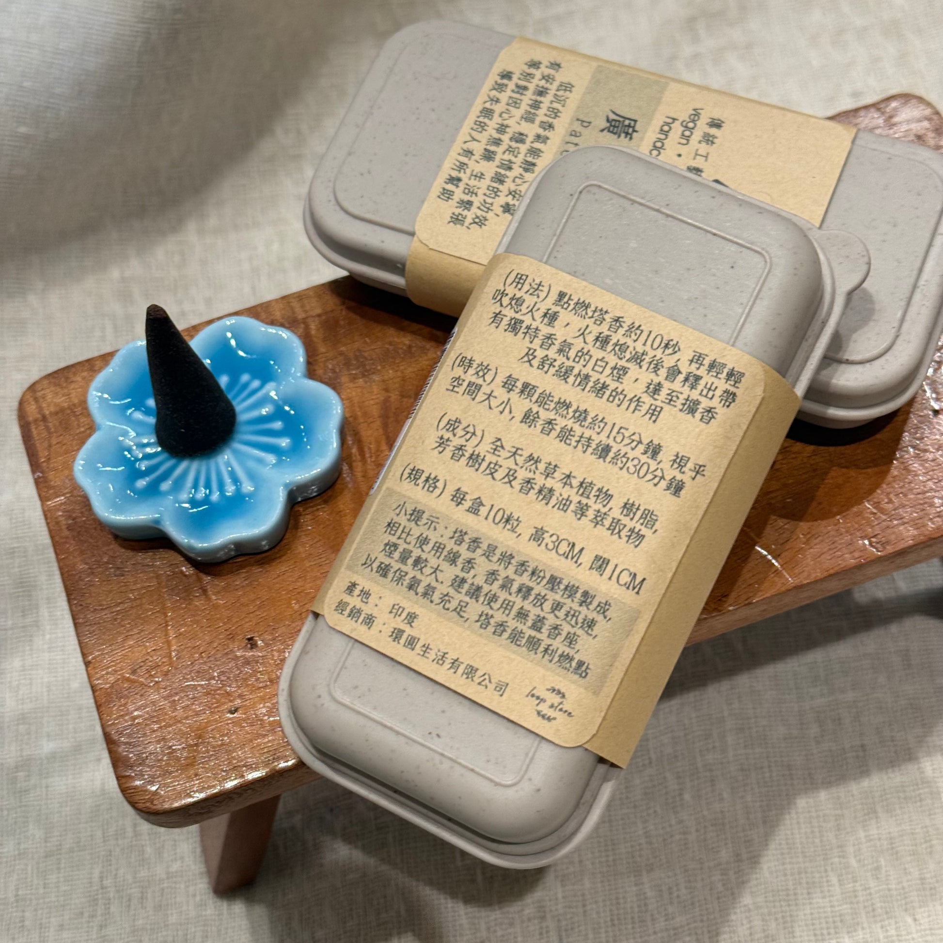 *小提示:塔香是將香粉壓模製成,相比使用線香,香氣釋放更迅速,煙量較大,建議使用無蓋香座,以確保氧氣充足,塔香能順利燃點